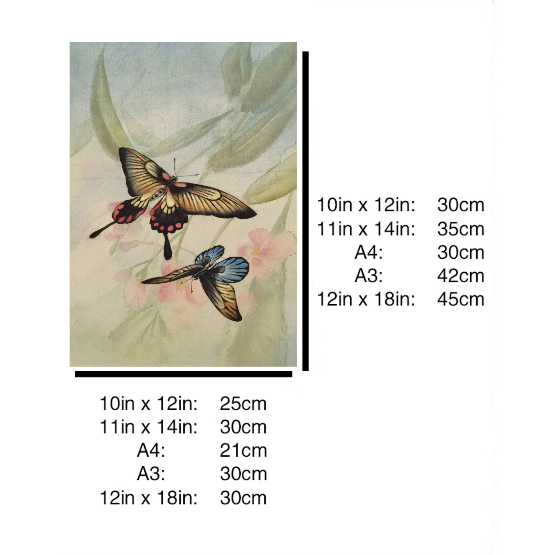 Hand-painted Swallowtail Butterfly Artwork – Fine Brush Technique, Premium MATT Paper, Natural Wood Frame, Multiple Sizes & Colors