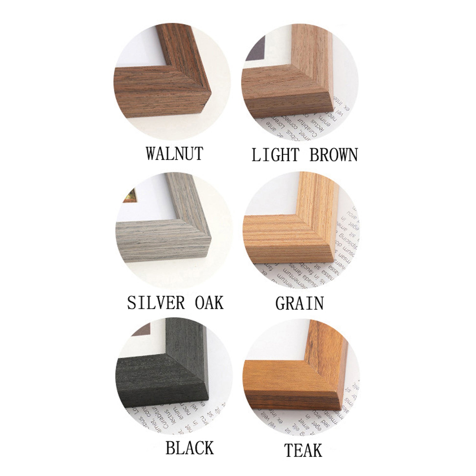 2. Frame is a faux wood with a natural wood grain effect. 20mm wide and 20mm deep section. Fully wrapped Mdf frame in a woodgrain finish.
