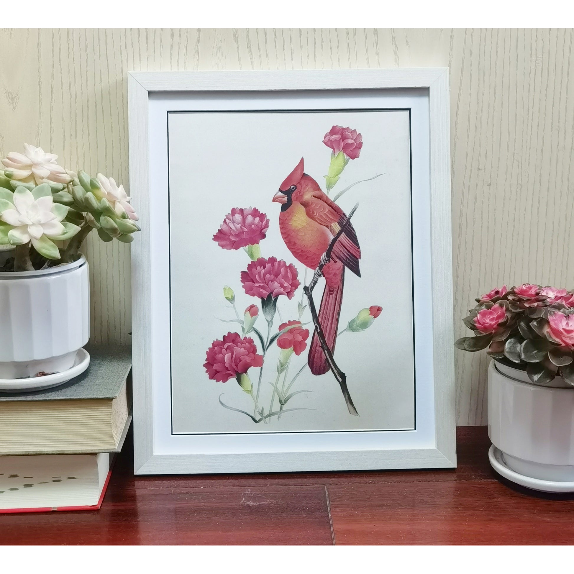 This exquisite artwork features a hand-painted rendition of the vibrant North Carolina Cardinal, printed on high-quality MATT paper for vivid colors and remarkable detail. The natural wood frame complements the print, adding a rustic yet elegant touch to your space. Available in various sizes and colors, this print can be displayed on the wall or placed on a tabletop, making it the perfect versatile décor for any modern setting. Ideal for your home, office, or as a thoughtful gift for bird lovers.