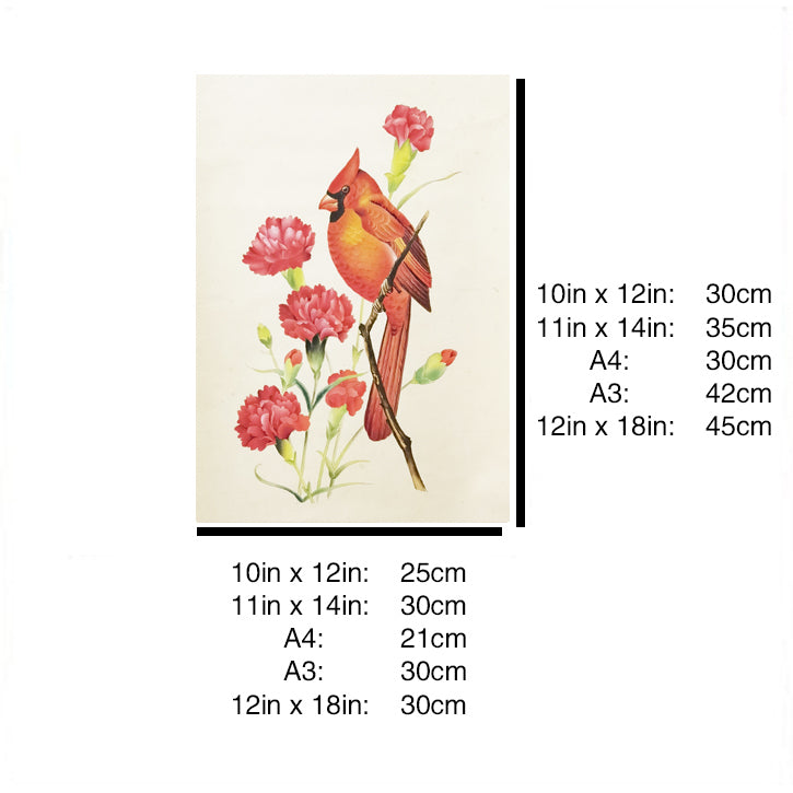 North Carolina Cardinal Hand-painted Art Print - Premium MATT Paper, Natural Wood Frame, Wall & Tabletop Décor, Multiple Sizes & Colors Available