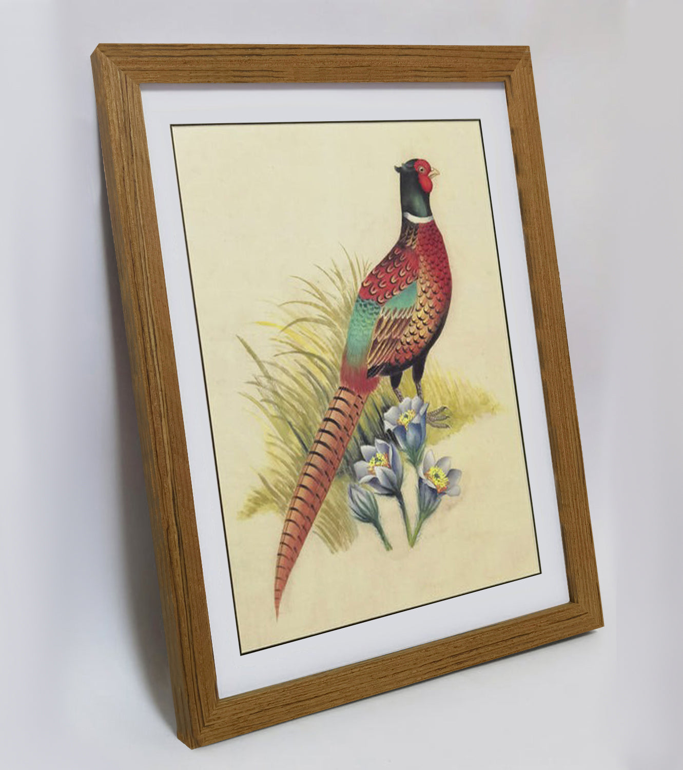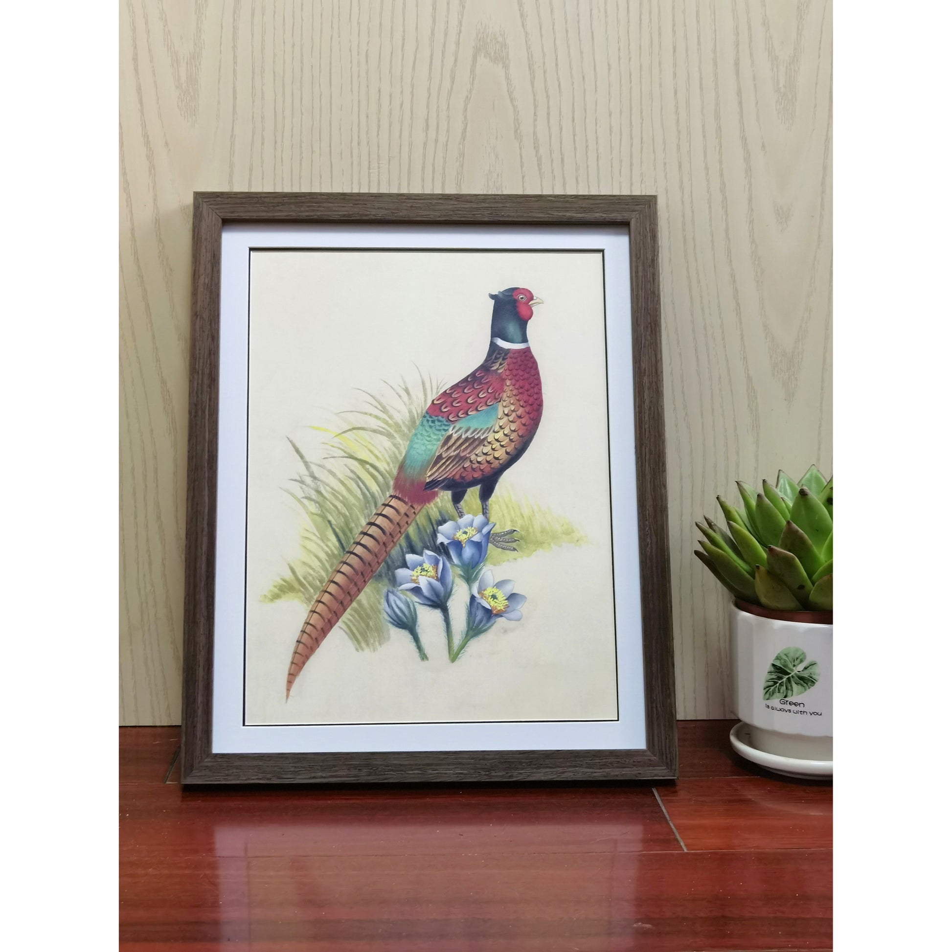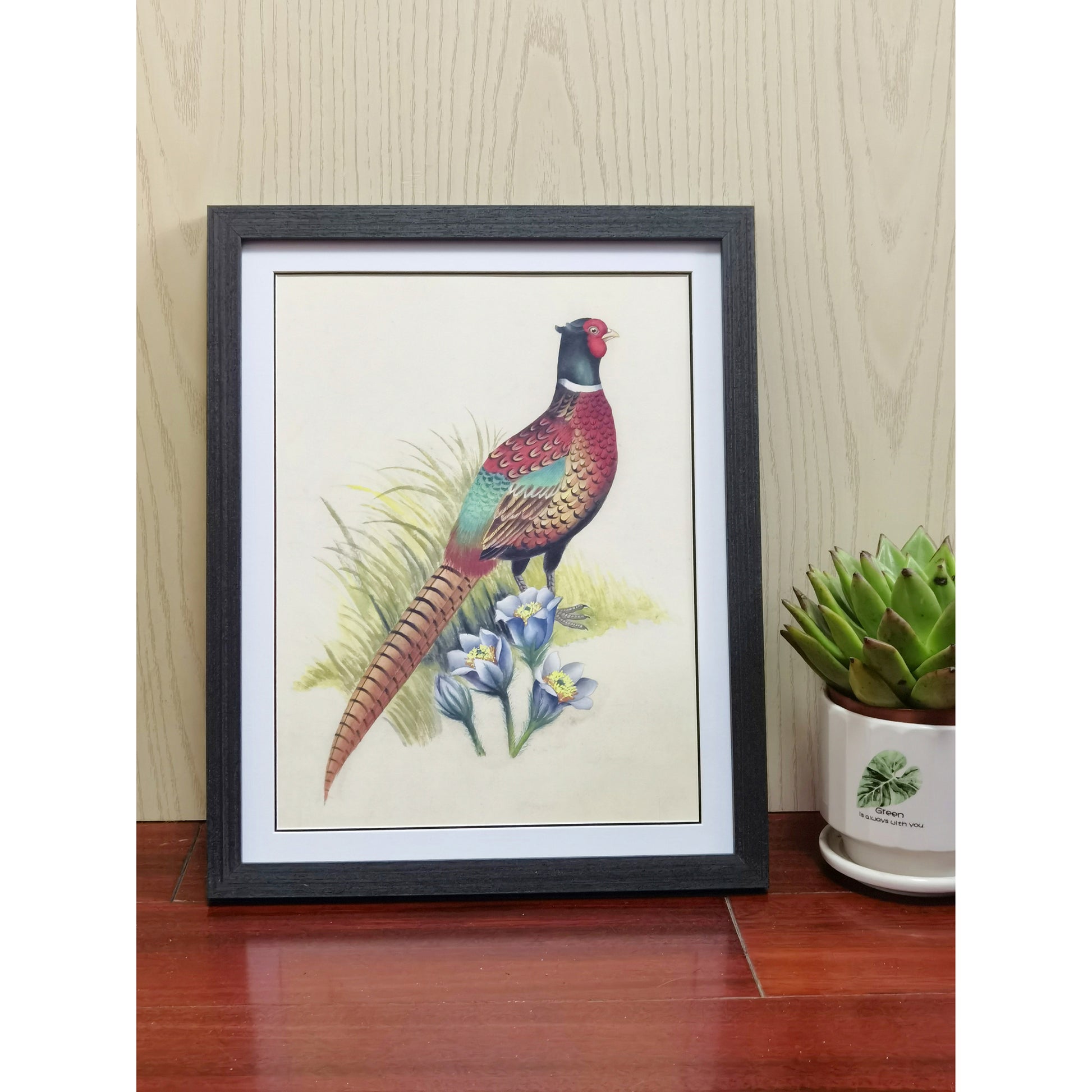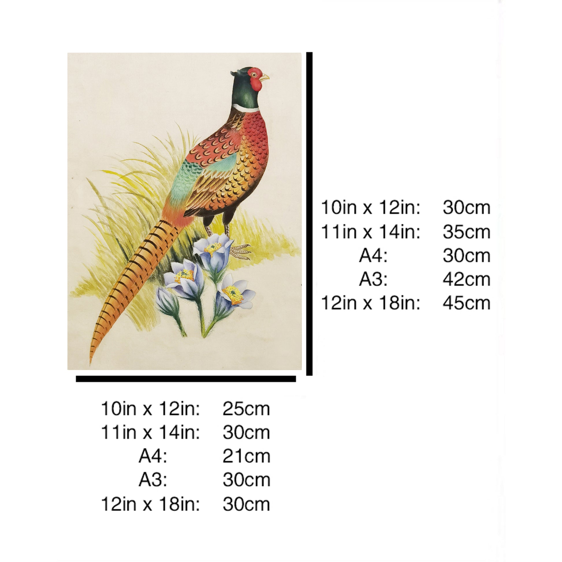 This exquisite piece captures the beauty of the iconic pheasant in stunning detail, printed on high-quality MATT paper for a rich, vibrant finish. Each print is meticulously hand-painted, offering a unique touch that brings the charm of nature into your home or office. The natural wood frame complements the artwork, adding a touch of rustic elegance and making it the perfect addition to any décor.