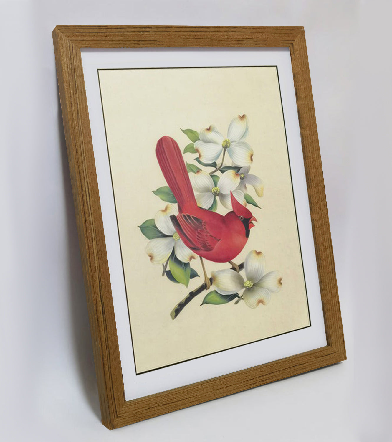 Virginia Northern Cardinal Hand-painted Art Print - Premium MATT Paper, Natural Wood Frame, Wall & Tabletop Décor, Multiple Sizes & Colors
